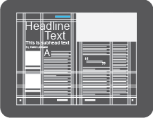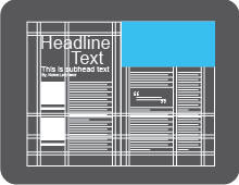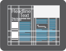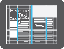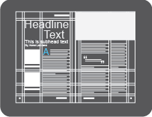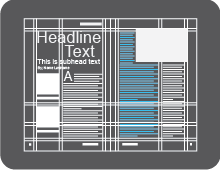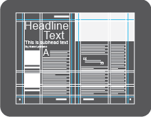The imaginary lines defining boundaries on a page. It serves as the underlining structure on the page. Images and text are aligned to it.