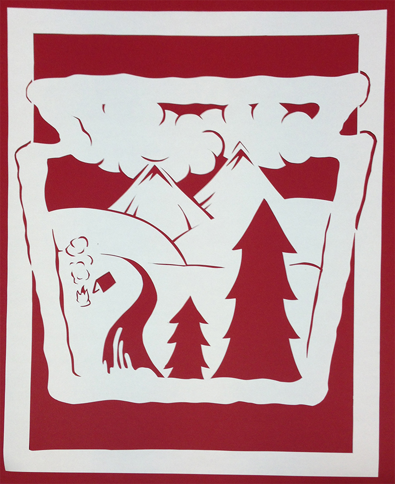 The student will develop an understanding of the possibilities inherent in Line, Organic/Geometric Shapes, Negative/Positive Space, Figure/Ground Reversal, Representational/Nonrepresentational Shapes and Balance. The student will become more articulate in the craft of cutting paper. The student's understanding of 2D design as applied to the creation of visual effects will become more observant. The student will create a cut paper design. This design can be nonrepresentational or representational and be comprised of organic or geometric shapes, or a combination of all of the above.