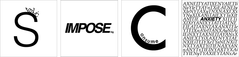 For this project, the student will explore its expressive of a word by manipulating the letterforms. To achieve the desired effect, avoid simply repeating the words or creating an illustration from the letterforms. The best solutions not only enhance the word’s meaning but are clever and aesthetically pleasing. Sometimes an unexpected effect can be achieved when the typographic solution contradicts the meaning of the word, setting “big” with small type, for example. While the typestyle the student chooses is important to the message, the manipulation of the letterforms should be what conveys the meaning.