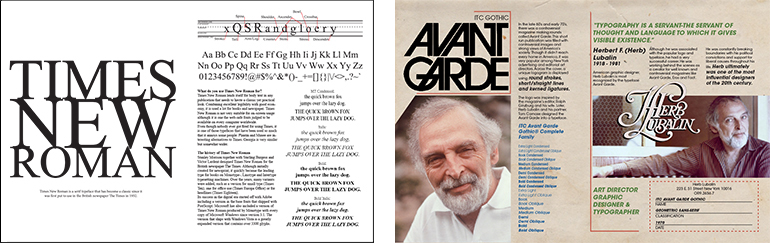 The purpose of this assignment is to further explore typographic hierarchy as well as to begin to understand grids. A grid is the skeleton or framework that allows for arranging content within the space of the page. It is the building block of all digital images and marks and is not a rigid formula, but instead a flexible, resilient structure. While singlecolumn grids work well for simple documents, multicolumn grids provide flexible formats for publications that have a complex hierarchy or that integrate text and illustrations. The more columns you create, the more flexible your grid becomes. For the assignment, the student will create a spread (two pages that face each other, books and magazines are designed using spreads) that incorporate a type designer and one of their fonts.