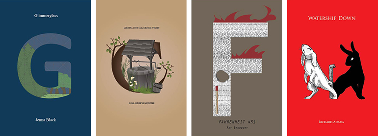 not involve a complete alphabet. It may only involve a single letter. Hand lettering can be seen as custom artwork and can be a little experimental. For the assignment, the student will create a drop cap letterform for his/her favorite book. This project is inspired by the series of drop cap book covers that Jessica Hische illustrated for Penguin. The student will choose a book he/she loves, then create a cover featuring a flourished letterform in the mood and spirit of the chosen book.