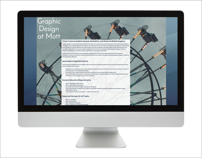 The focus of this course is on the development, planning, design and production of several different types of electronic publications including Web-based and CD/DVD production. Students will learn how to modify their design approaches for the electronic environment. Students will be taught to use current graphics industry standards software, and the proper preparation of media in national and international society. Use of the computer lab will be required. Internet access will be necessary for project research and development.