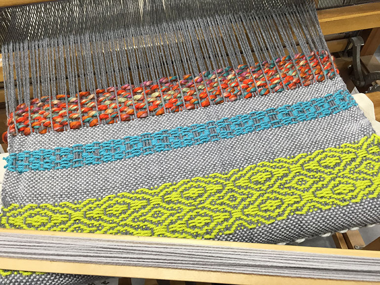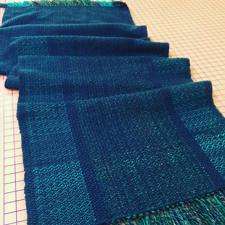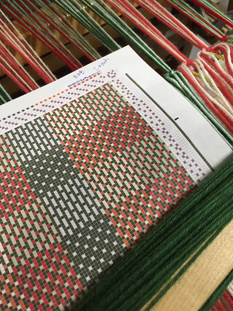After studying the women of the Bauhaus, particularly the weaving workshop, I took an interest in learning more about the actual process of weaving. Anni Albers writing in particular interested me as she talked about fabric in a way that revealed the complexity of it's creation. I wanted to discover the process and begin to understand how to construct a cloth. I took one class on the rigid haddle loom which gave me an introduction to the fundamentals of the process. I then started to teach myself how to use a floor loom using a book and YouTube videos. It took me awhile to fully understand the connection between how I warped through the heddles, how I hooked up the treddles, and the way I pressed the peddles. This relationship is called the draft. I have begun to be able to create my own draft instead of just rely on existing materials. My goal right now is to explore the medium to get a better understanding of it. I am curious about the process of construction through the medium as well as how process intensive weaving is as an artform.