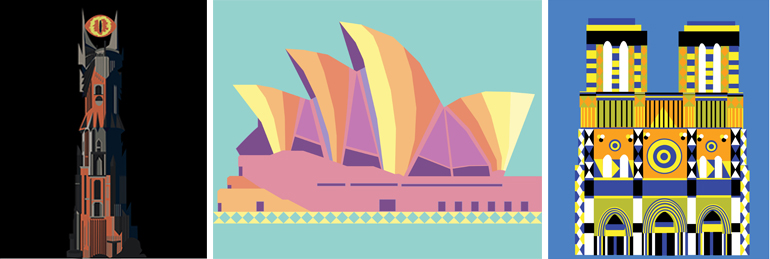 For this project, you will create a geometric illustration of a building or landmark of your choosing. By “geometric illustration,” I am referring to a simple shape-based style where