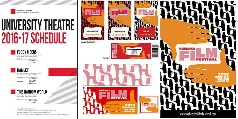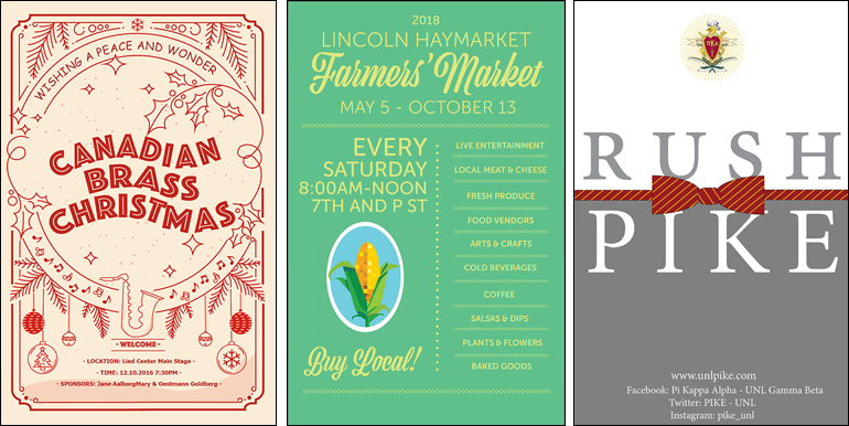 The layout modules start by introducing students to tthe basics of grids and hierarchy by using InDesign to create layouts focused more on type and basic design terminology. The students then create a poster that introduces creating images in Adobe Illustrator and/or Photoshop as well as typographic hierarchy. Students also explore creating a basic publication layout with master pages, page numbers, and paragraph and/or character styles. The students are also introduced to basic print terminology over the course of the modules.
