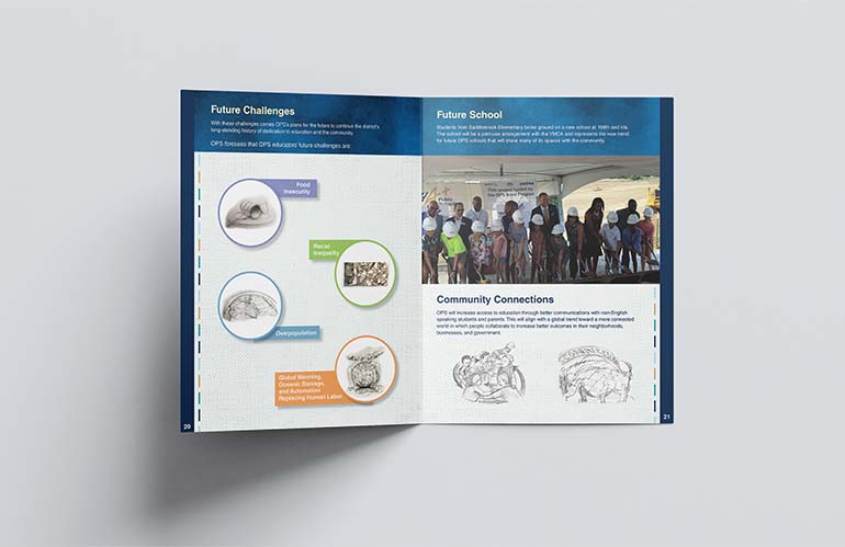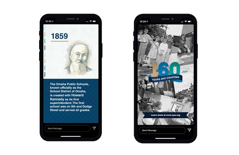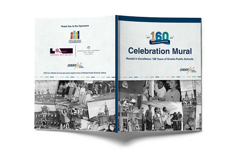 Strategies: Omaha Public School’s 160th anniversary celebration and its new mural installation. The strategy aimed to draw attention from OPS’s more than 53,000 students to get them excited to learn more about their school’s history and be proud of where they’ve been, where they are, and where they’re going. The brochure would complement a mural viewer’s experience, while the videos would show behind the scenes footage of its creation. The site would offer more in-depth information, and the strategy would make the entire celebration and deliverables live.